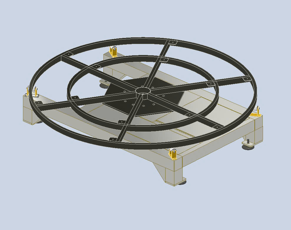 Khung được gia cố và sử dụng thép dày. Tùy đường kính mặt bàn và ứng dụng cụ thể chúng tôi sẽ thiết kế và tối ưu thêm.