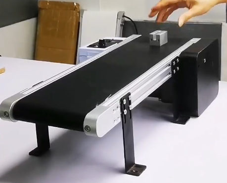 Kết cấu băng tải mini có thể đa dạng như có 4 chân thông thường, hoặc loại bố trí động cơ chính giữa và phần này cũng làm chân để giúp dễ bố trí và gá đặt băng tải mini lên hệ thống tự động.