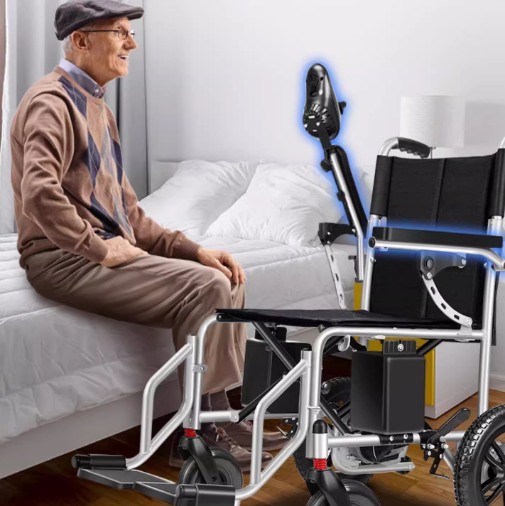 Xe lăn điện gấp gọn thông minh này còn có tính năng điều khiển từ xa, có thể hỗ trợ tốt hơn nữa trong quá trình sử dụng như sau khi ngồi vào vị trí thì điều khiển để xe ra chỗ khác nhằm tránh vướng, tránh chiếm không gian.
