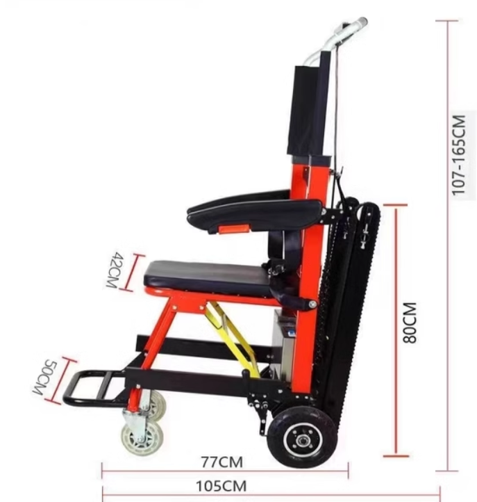 Việc di chuyển lên cầu thang vẫn cần phải có người hỗ trợ, xe sử dụng bánh xích để di chuyển đảm bảo hoạt động ổn định và di chuyển nhẹ nhàng. Ngoài ra còn có thể nâng cấp phiên bản xe lăn chạy điện, không cần người đẩy.